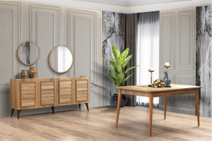 Beykoz Ceviz Yemek Odası takım içeriğine Aynalı Konsol, Yemek Masası ve 6 Adet Sandalye Dahildir.
