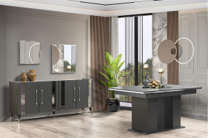 Duru Antrasit Yemek Odası takım içeriğine Aynalı Konsol, Yemek Masası ve 6 Adet Sandalye Dahildir.