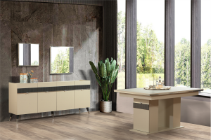Elit Kumtaşı Yemek Odası takım içeriğine Aynalı Konsol, Yemek Masası ve 6 Adet Sandalye Dahildir.