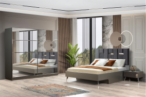Işıl Antrasit Yatak Odası Takım İçeriğine Sürgülü Dolap, Aynalı Şifonyer, 2 Adet Komodin ve Bazalı Karyola Dahildir.