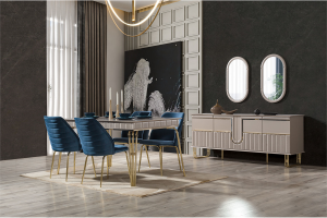 Hayyam Yemek Odasına Aynalı Konsol, Yemek Masası ve 6 Adet Sandalye Dahildir.